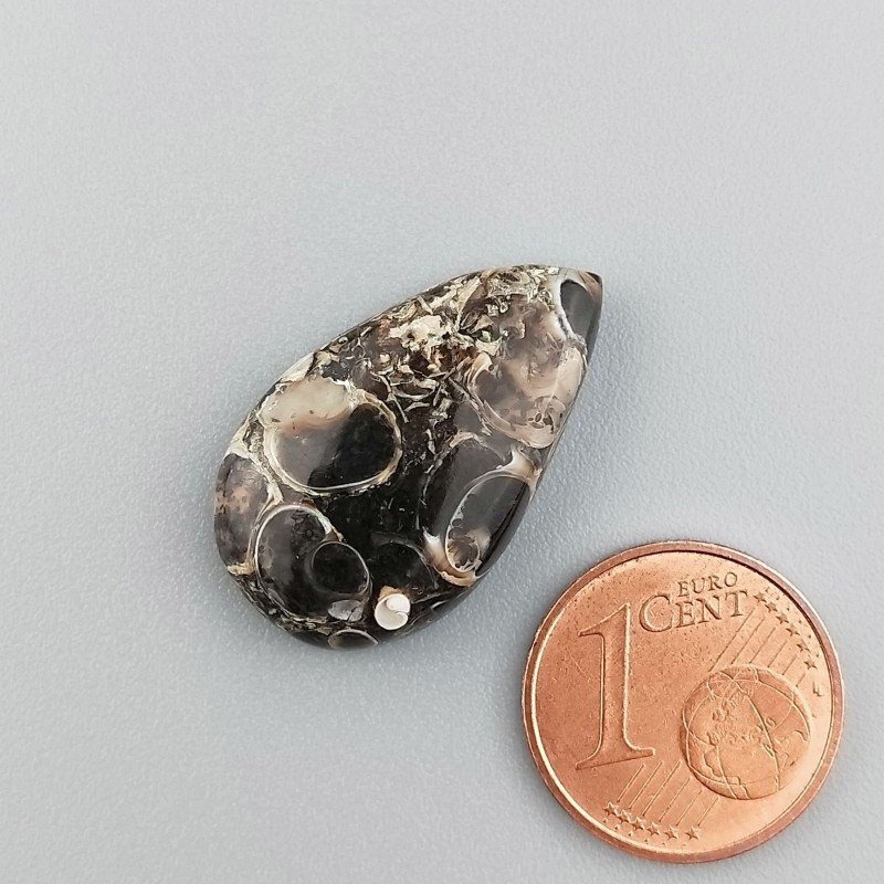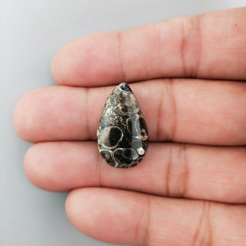 Agata Turritella Naturale Forma Goccia Piatto Cabochon Liscio Fatto a Mano 24X14X5mm 13,95 Carati 1pz