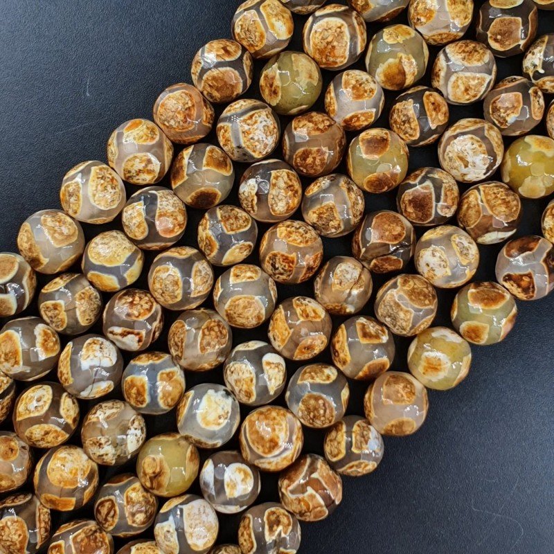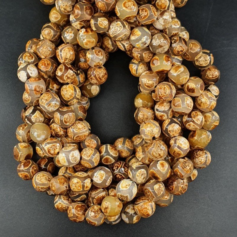 Agata Tibetana Beige Marrone Perline Forma Tondo Sfaccettato 10mm