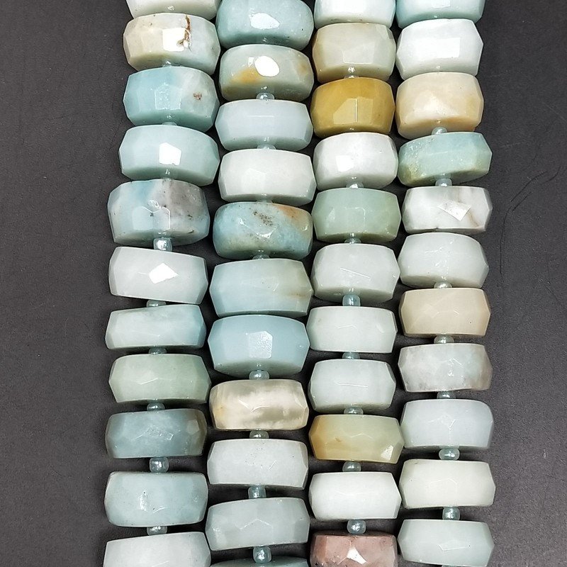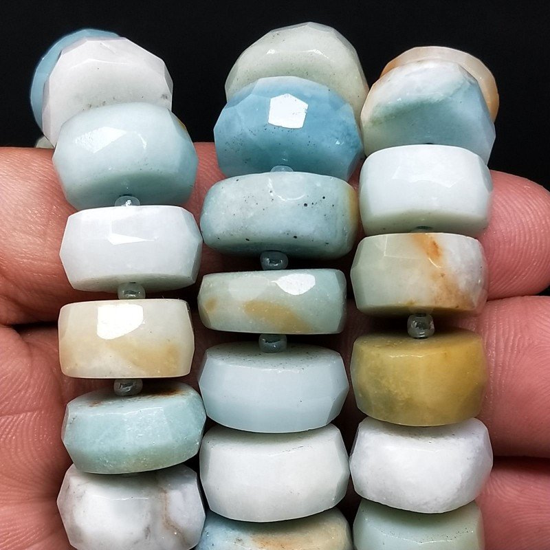 Amazzonite Multicolore Naturale in Perline Forma Rondelle Sfaccettato Foro Passante Irregolari 14-16mm