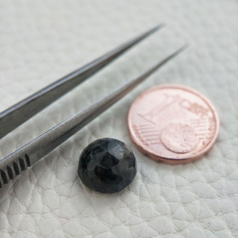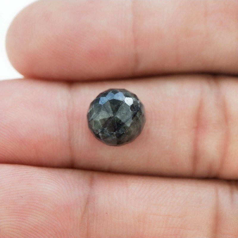 Zaffiro Blu-Grigio Naturale Taglio Tondo Cabochon Sfaccettata Rose Cut a Mano 9mm 1pz