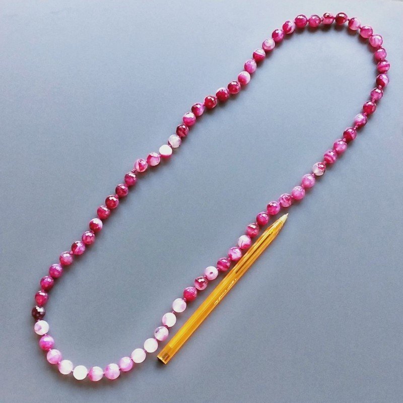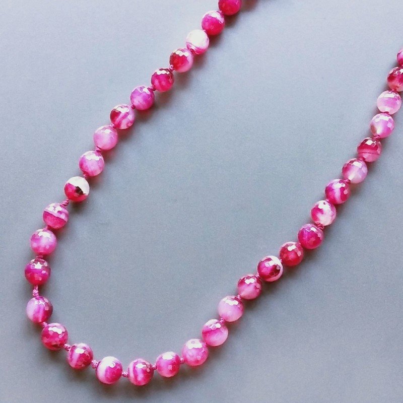 Collana Annodato di Agata Fucsia Tondo Sfaccettato 10mm