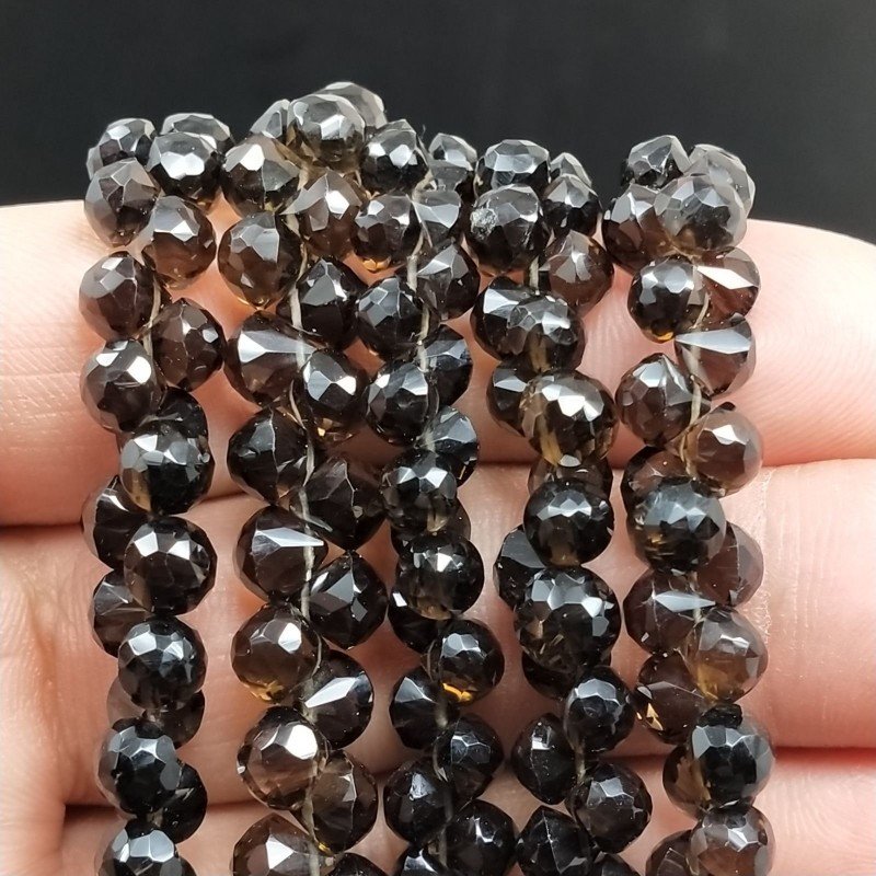 Quarzo Fume Perline Forma Cipolla-Castagna Sfaccettato a Mano Foro Laterale
