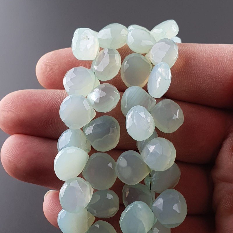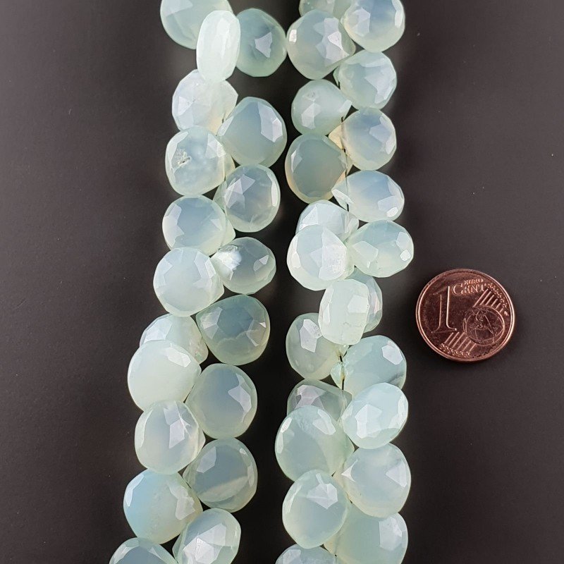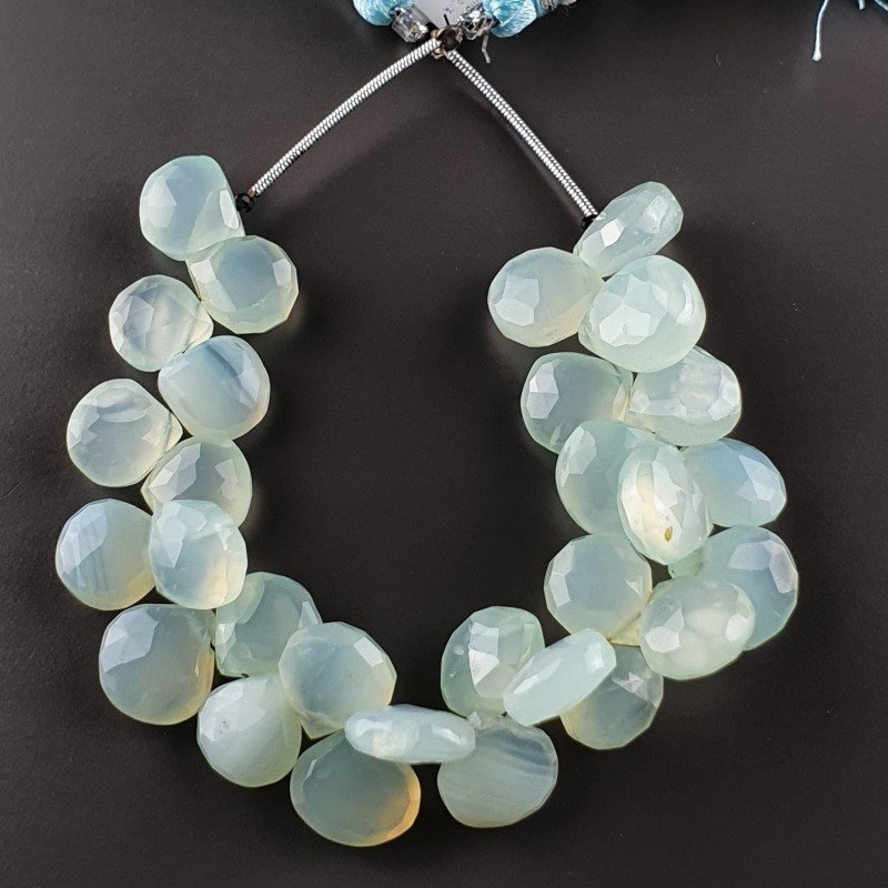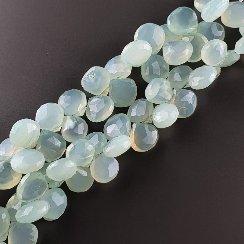 Calcedonio Verde Acqua Chiaro Perline Forma Cuore Piatto Sfaccettato a Mano Foro Laterale 09-12mm