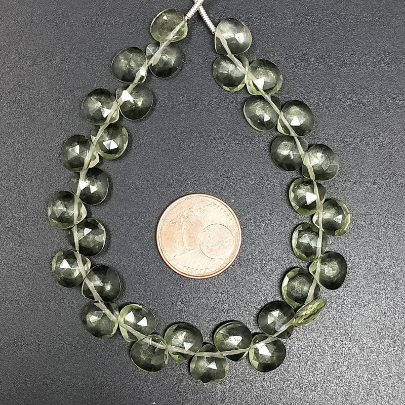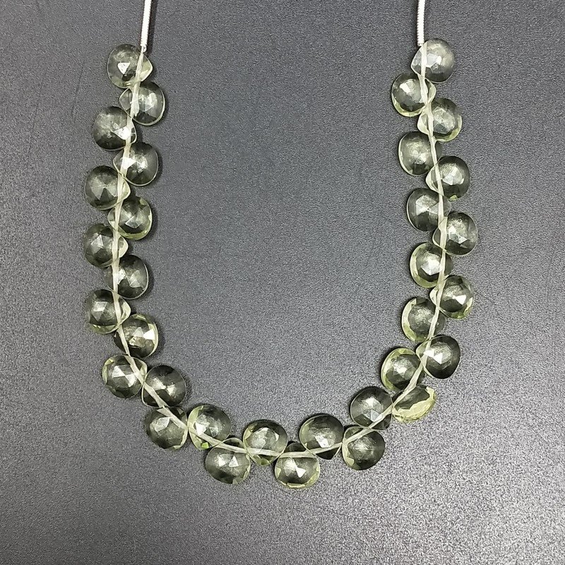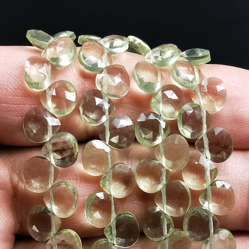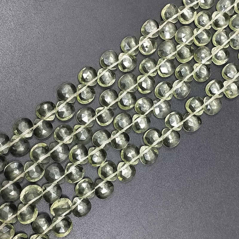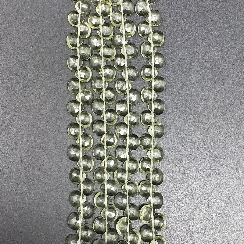 Ametista Verde Idrotermale Perline Forma Cuore Piatto Sfaccettato a Mano Foro Laterale 07mm