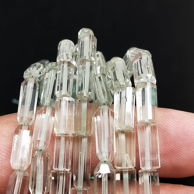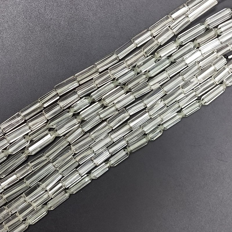 Ametista Verde (Prasiolite) Perline Forma Cilindro Sfaccettato a Mano