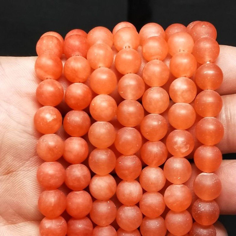 Giada Arancia Satinato-Matte Perline Forma Tondo Liscio 08mm