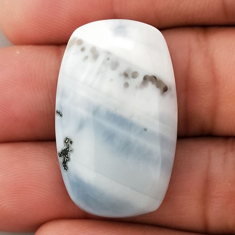 Opale Owyhee Blu Naturale Forma Cuscion Piatto Cabochon Liscio Fatto a Mano 31X19X7mm 6,19gm 1pz