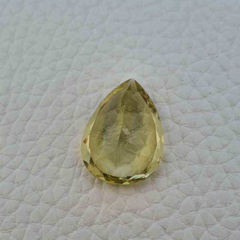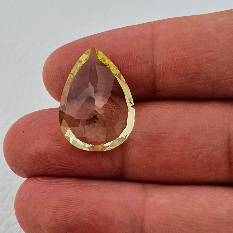 Quarzo Limone Naturale Taglio Goccia Sfaccettato a Mano Gemma Sciolta 16X22X10mm 18.10 Carati 1pz